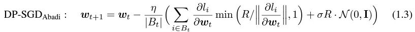 但这是完全不必要的,遵循第一性原理 从privacy accounting theory出发。其实clipping function只需要满足Clip(g_i)*g_i的模小于等于R就可以了,也就是说Abadi's clipping只是一种满足这个条件函数,绝非唯一。