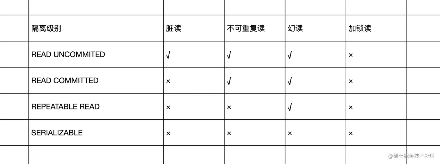 - READ UNCOMMITTED:读未提交。在该隔离级别下,所有事务都可以看到其他未提交事务的执行结果。不能避免脏读、不可重复读、幻读。
