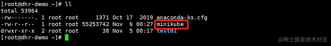 执上面的命令下载minikube,会在~目录下生成一个没有执行权限的minikube文件