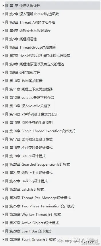 怎么样?是不是感觉看着有点懵逼。小编在刚看到的时候也是一脸懵逼,可以说现在多线程技术作为Java语言和应用的基础能力,对其的学习、理解和掌握,不仅仅能够提升我们的技能,更能作为我们更好地理解面向对象编程、并发编程、高性能编程、分布式编程的人口,进一步还会涉及操作系统线程模型、JVM线程模型、应用场景优化。市面上关于多线程的资料有太多,今天要与大家介绍的PDF是一位阿里大牛精心编写的文档,可以说能够让大家更全面地拓展自己的编程能力,更进一步地充实编程设计和架构设计的系统性思维。如果有朋友需要高清版PDF,可以转发+关注+点赞后,无偿拿走【查看小编主页】即可拿走!