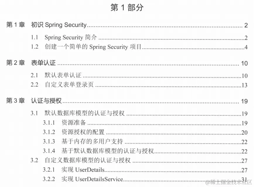 第1部分主要介绍Spring Security 的基本配置,包括默认配置、简单表单认证,以及基于数据库模型的认证与授权。