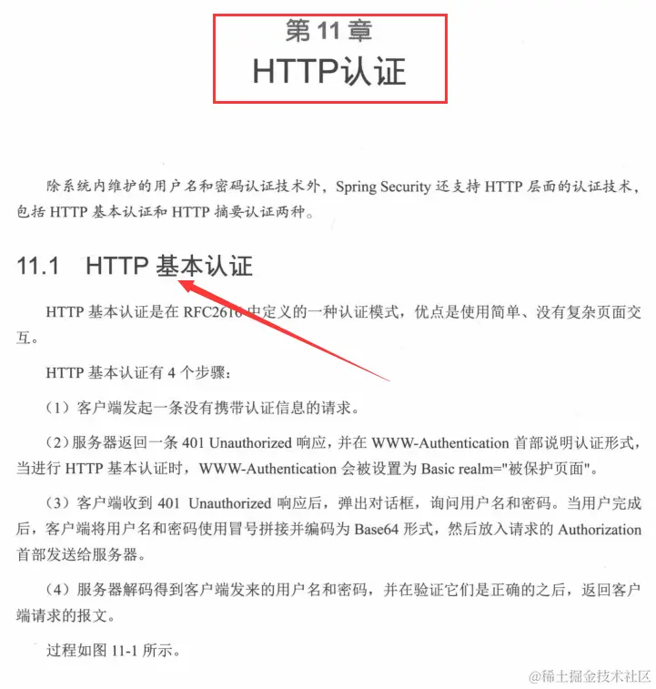 第11章讲HTTP认证,除系统内维护的用户名和密码认证技术外,Spring Security还支持HTTP层面的认证技术,包括HTTP基本认证和HTTP摘要认证两种。