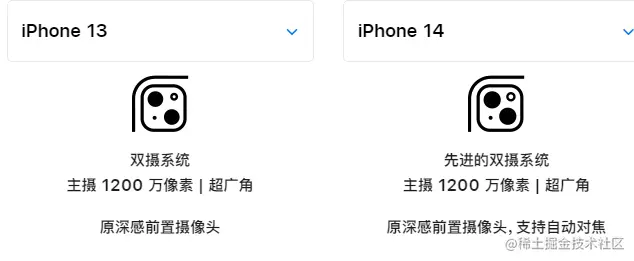 iPhone13和iPhone14搭载了相同1200万像素的后置双摄,但主摄像头光圈增大到F/1.5,拍摄效果更好。前置摄像头表述为支持了自动对焦,这也是与iPhone13不同的一点。