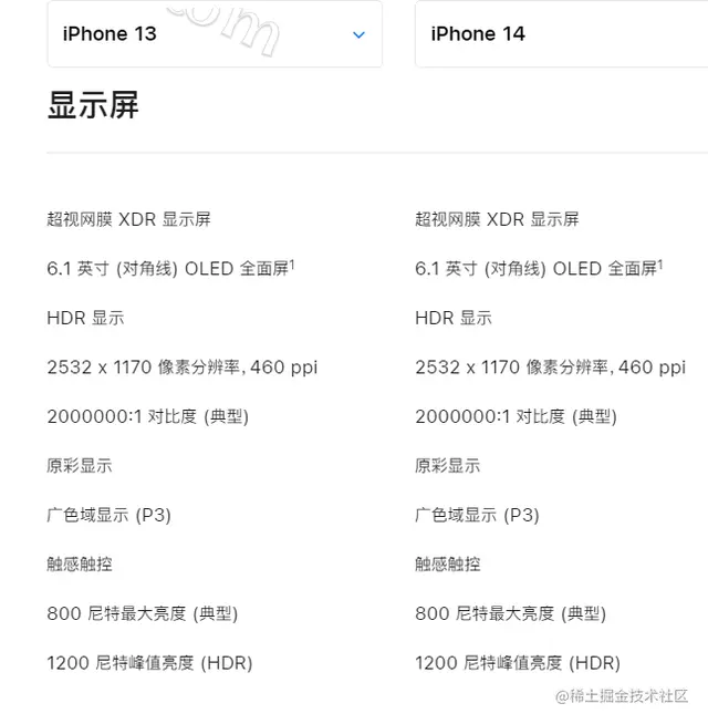 显示屏方面没有升级,看官方参数可知,iPhone13和iPhone14的显示屏规格是一模一样的。