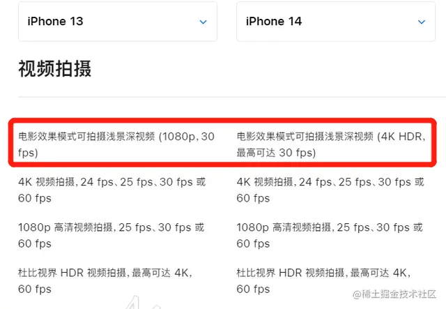 在视频拍摄方面,iPhone14在电影效果模式增加了4K HDR的视频拍摄功能支持,前置和后置相机升级支持了4K HDR效果。