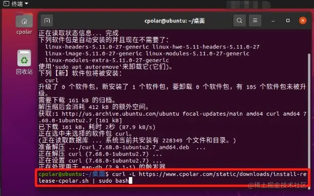 安装curl软件,接着我们输入命令,安装cpolar软件
