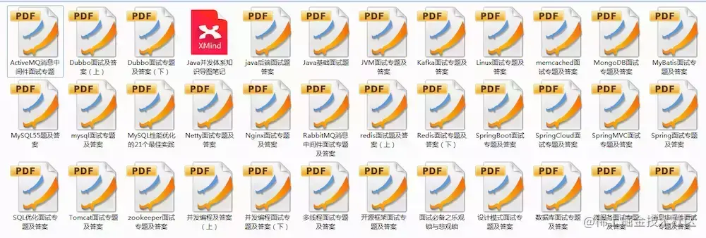 针对于上面的文章我总结出了互联网公司java程序员面试涉及到的绝大部分面试题及答案做成了文档和架构视频资料(包括Dubbo、Redis、Netty、zookeeper、Spring cloud、分布式、高并发等架构技术资料),希望能帮助到您面试前的复习且找到一个好的工作,也节省大家在网上搜索资料的时间来学习。