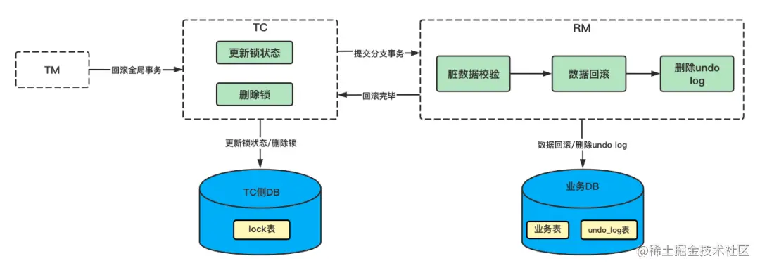 AT 模式的二阶段提交,TC 侧会将该事务的锁删除,然后通知 RM 异步删除 undo log 记录即可。
