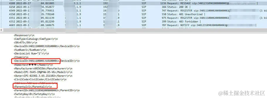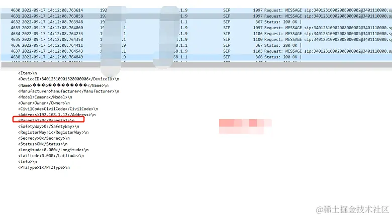 2)展开数据包结构查看,设备在发送通道时,设备parental字段是1,但是在国标协议中,这个字段表示的是组织。