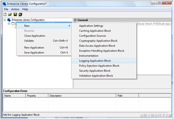 创建app.config,并通过Enterprise Library Configuration Console****进行配置