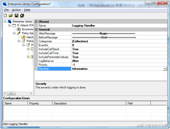 接着在Policy下的Handlers节点添加两个CallHandler:Caching Handler和Logging Handler。保持Caching Handler的默认配置,按如下进行Loging Handler的配置: