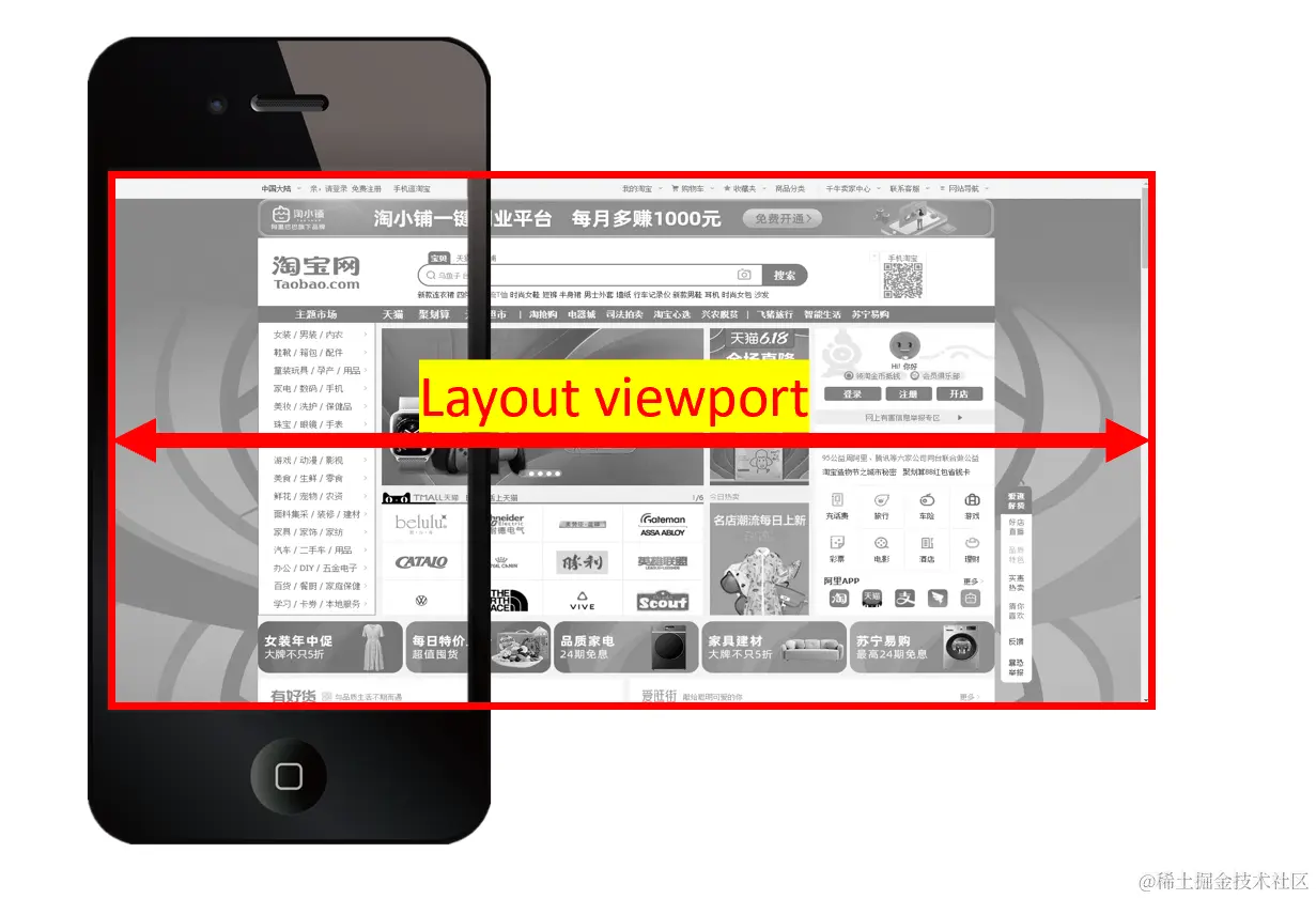 在移动端,浏览器厂商面临着一个比较大的问题,他们如何将数以万计甚至可以说是数以亿计的pc端网页完整的呈现在移动端设备上,并且不会出现横向滚动条呢?那就要引出移动端的三个概念:1.布局视口、2.视觉视口、3. 理想视口