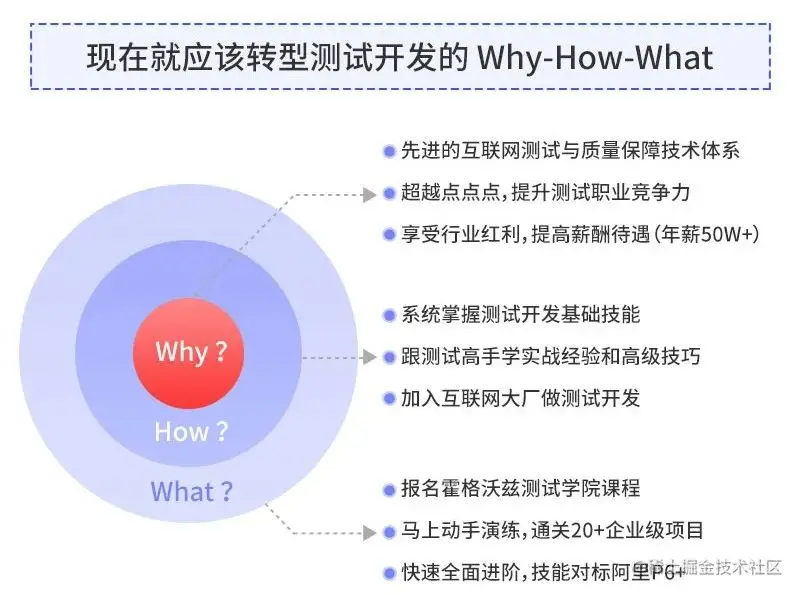 一方面,测试开发招人难已经成为 BAT 一线企业测试经理、测试负责人最头疼的问题,企业不得不考虑从研发部门抽调人力转型做质量保证;而另一方面,广大初级测试人员和传统测试团队却受技术栈限制、疫情经济下行影响,承受着求职困难甚至裁员压力,急需技术能力迭代升级。