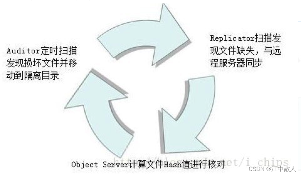 对象及其拷贝放置在某个磁盘上后,Swift 会使用Replicators、Updaters 和 Auditors 等后台服务来保证其数据的最终一致性。