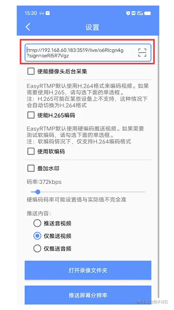 2)在EasyRTMP设置中填写推流地址,如下图: