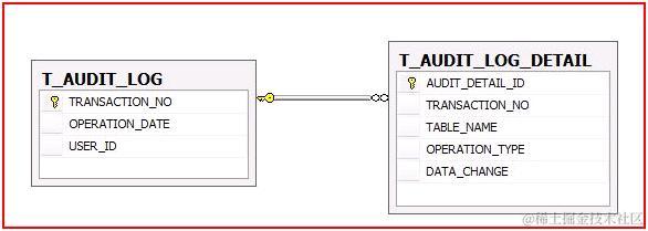 基于我们提取出的需要进行Log的信息,我们为决绝方案设计了下面的数据结构:两个具有主子关系的Table。主表T_AUDIT_LOG记录了一个Transaction的基本的信息:Transaction的标识,执行的用户帐号和操作的具体时间,子表T_AUDIT_LOG_DETAIL则记录了Transaction涉及的每条记录数据改变相关的信息:该记录对应的Table名称,操作的类型和具体的数据的变化。T_AUDIT_LOG和T_AUDIT_LOG_DETAIL通过Transaction的唯一标识TRANSACTION_NO关联在一起。