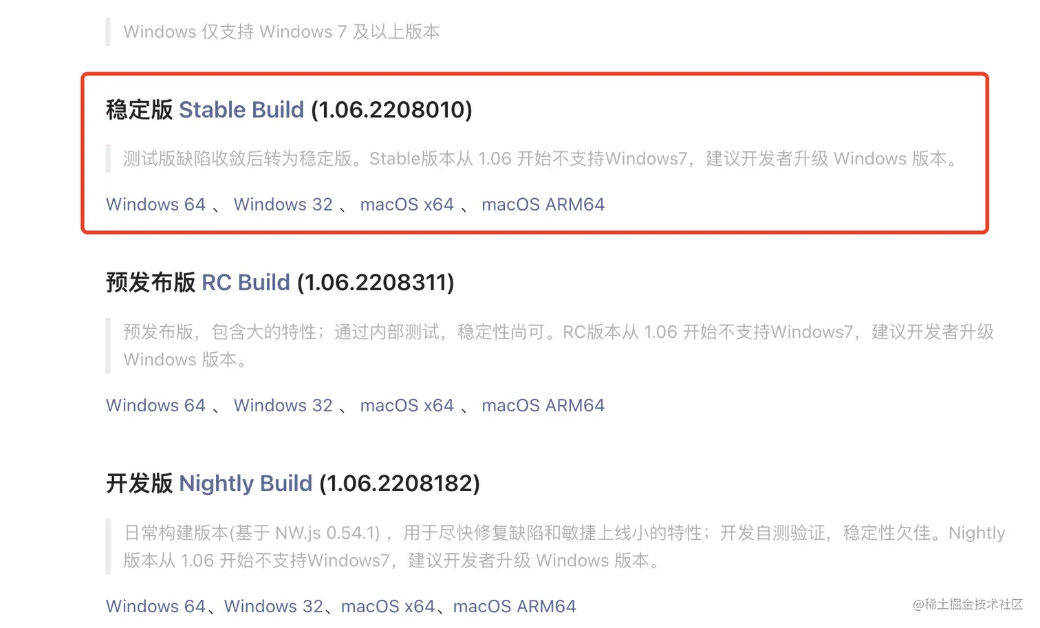 进入微信开发者工具官网,选择自己系统对应的版本下载(尽量选择稳定版),Mac M1系统下载macOS ARM64。
