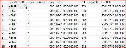 从上图中可以看到,最终的结果以ORDER BY中指定的SalesOrderID进行排序,但是ROW_NUMBER()体现的值却是基于CustmerID排序的。