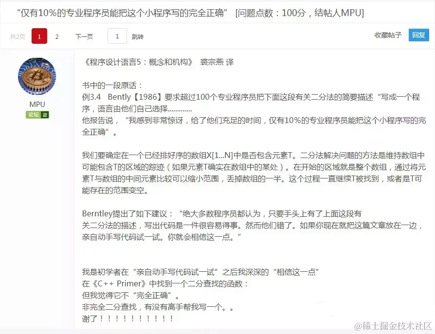 前段时间,在论坛上看到有统计说有90%的程序员不能够写对简单的二分法。二分法不是很简单的吗? 这难道不是耸人听闻?