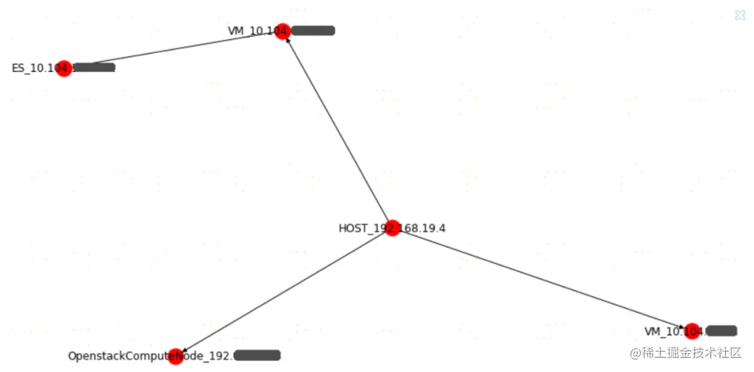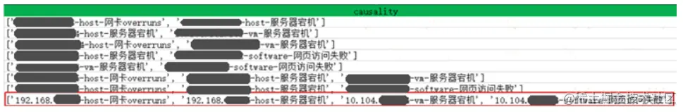可以解释为: “192.168.xxx.xxx-host-服务器宕机”导致 “10.104.xxx.xxx-vm-服 务器宕机”,进而导致“software-网页访问失败”。