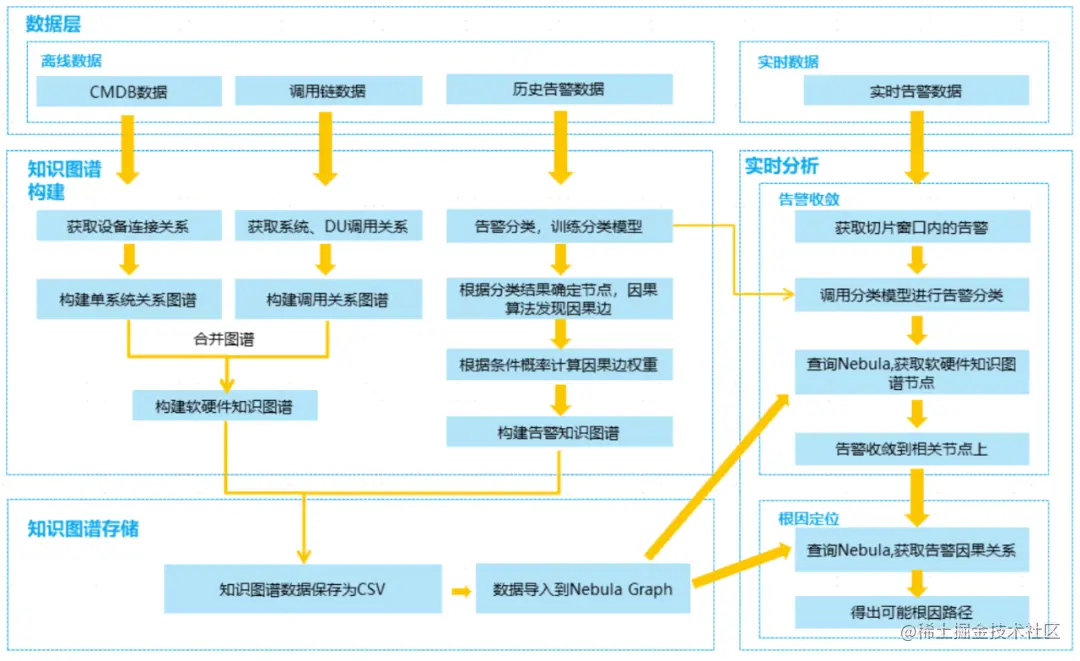 针对告警数据的收敛和根因定位,可以分为以下主要几个步骤。