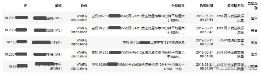 告警收敛:查询软硬件知识图谱将告警以系统为单位进行收敛,收敛格式如下,格式如下: