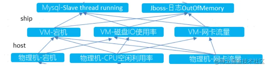有的告警对应于具体软件,比如 mysql 延迟,wildfly 无法获取连接。这样,每个告警类别都有自己明确的含义。在此基础上构建的因果图才是有意义的。
