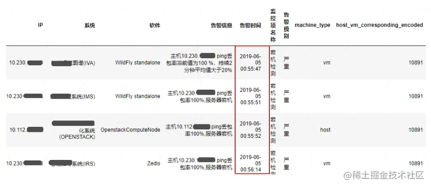 下面是一台虚拟机在某一个时间点的告警,以该告警构建样本。