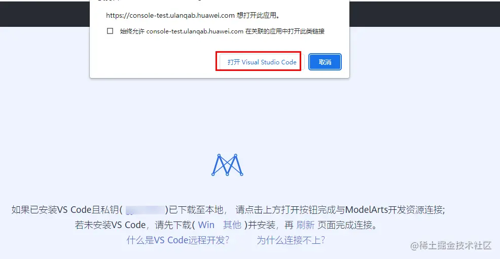 3)如果本地已安装VS Code,请单击“打开”,进入“Visual Studio Code”页面