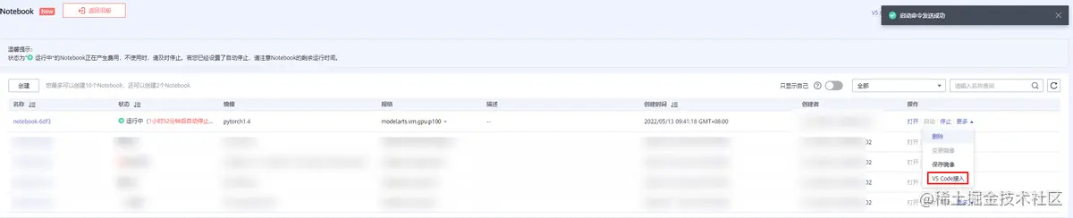 2)实例状态为“运行中”,点击“VS Code接入”