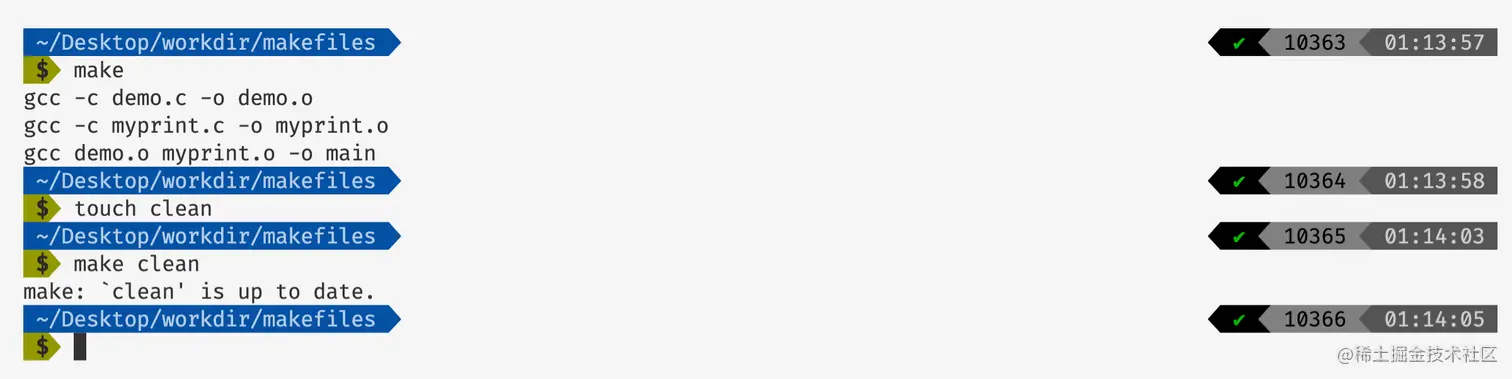 其实上面我们也可以直接使用make命令,不需要指定编译目标,因为make会自己寻找第一个目标作为被执行的目标。