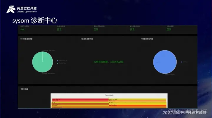 SysOM 诊断中心,也是相对比较核心的功能。我们目前对系统做了 SRE 诊断,另外也包含整个的软硬件诊断的情况,还有 IO 诊断,也去做了系统的低状态的检查。性能包括系统的调度的使用情况做了火焰图的分析,这样我们也就能够通过很直观的去看到系统的一些瓶颈、性能的问题。