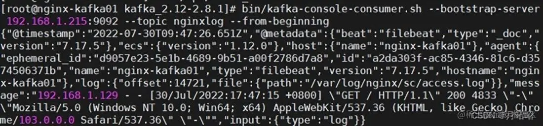 5、搭建filebeat,调试生产者和消费者