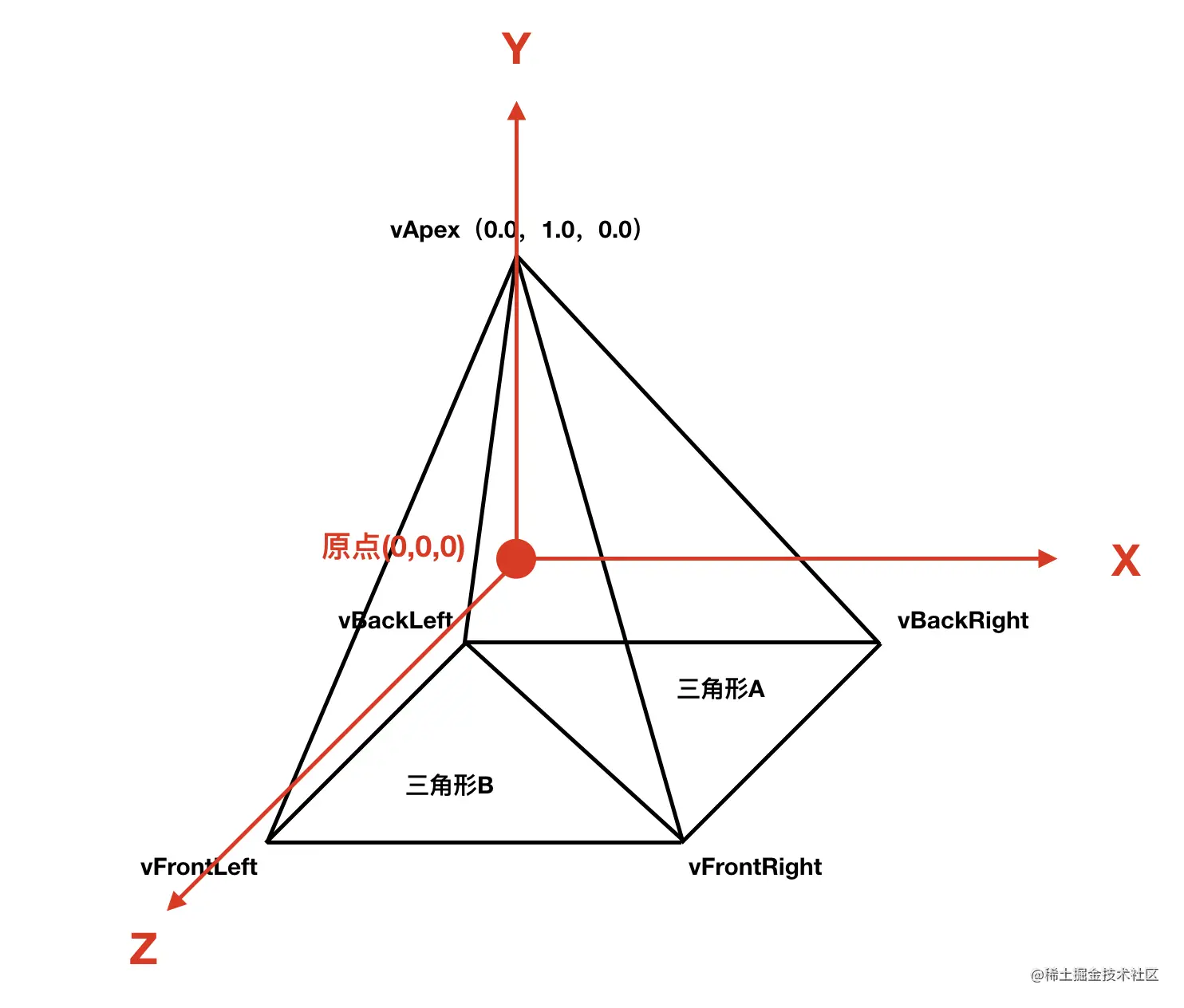 //三角形:(vApex, vBackLeft, vFrontLeft)