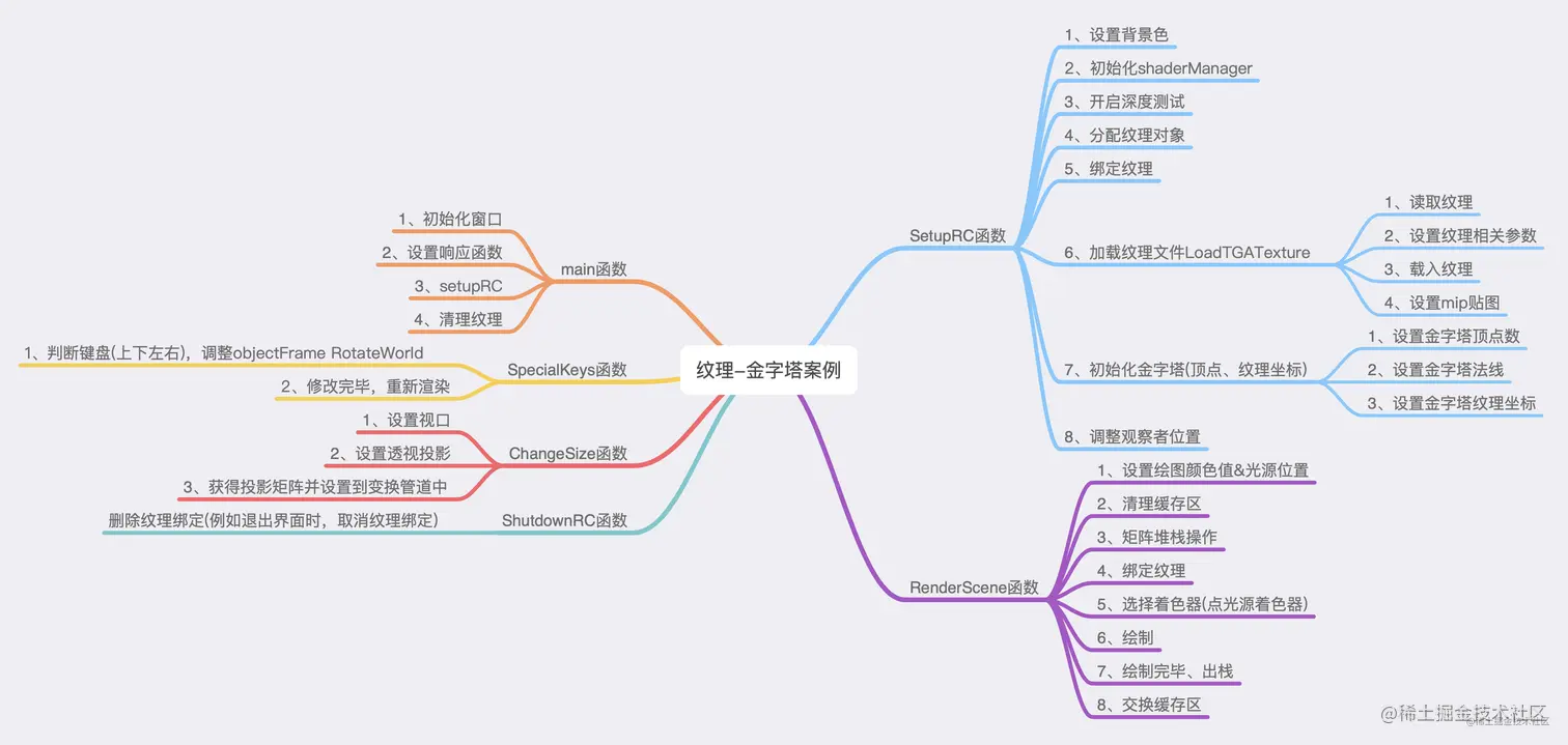 本篇主要描述了关于纹理方面的代码,后面的几个函数RenderScene、SpecialKeys、ChangeSize等在前几篇文章中都详细介绍过,所以这里就一笔带过。
