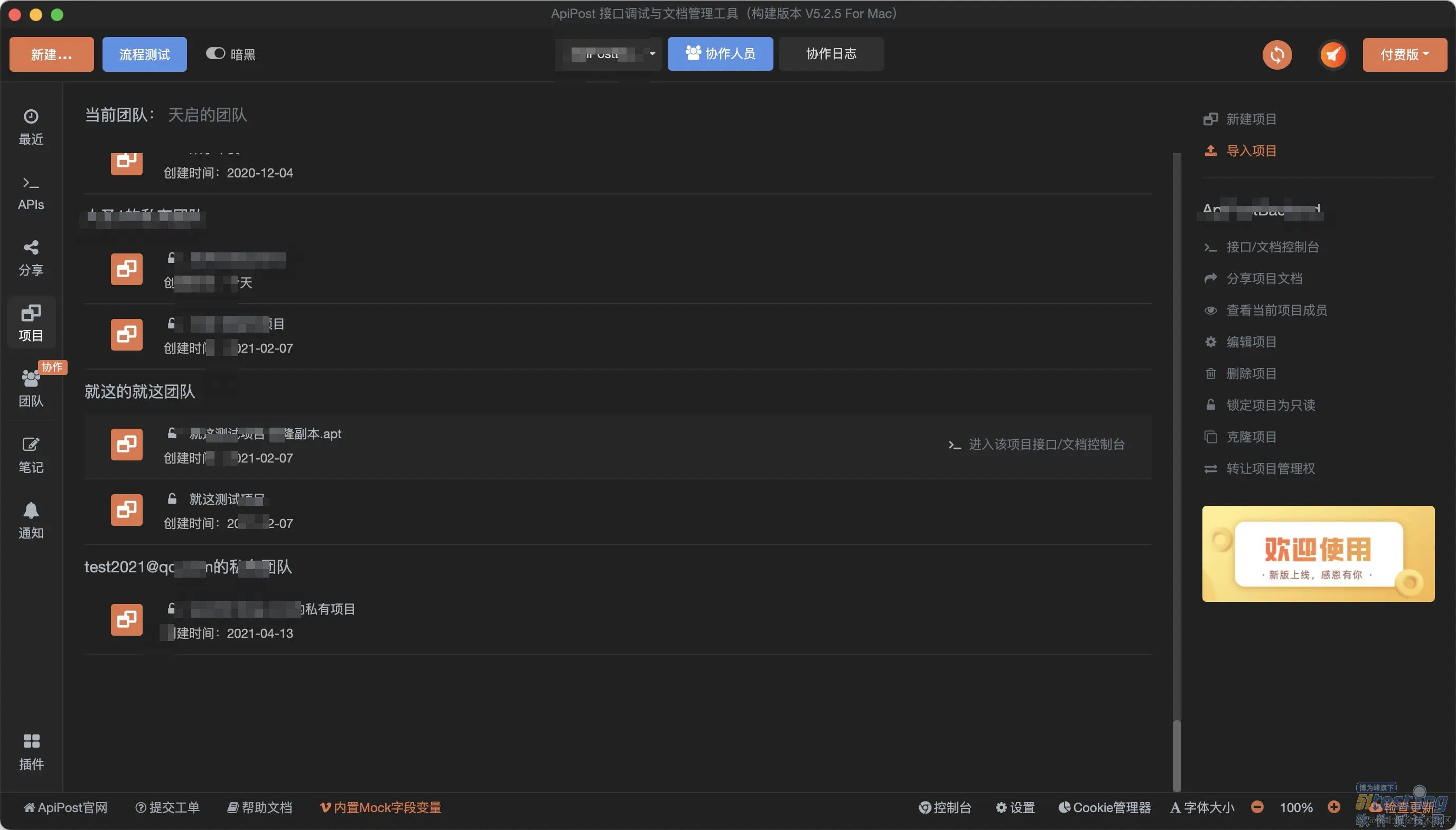 ApiPost十分适合干这件事儿。这款软件有团队、项目的概念,详细解释如下: