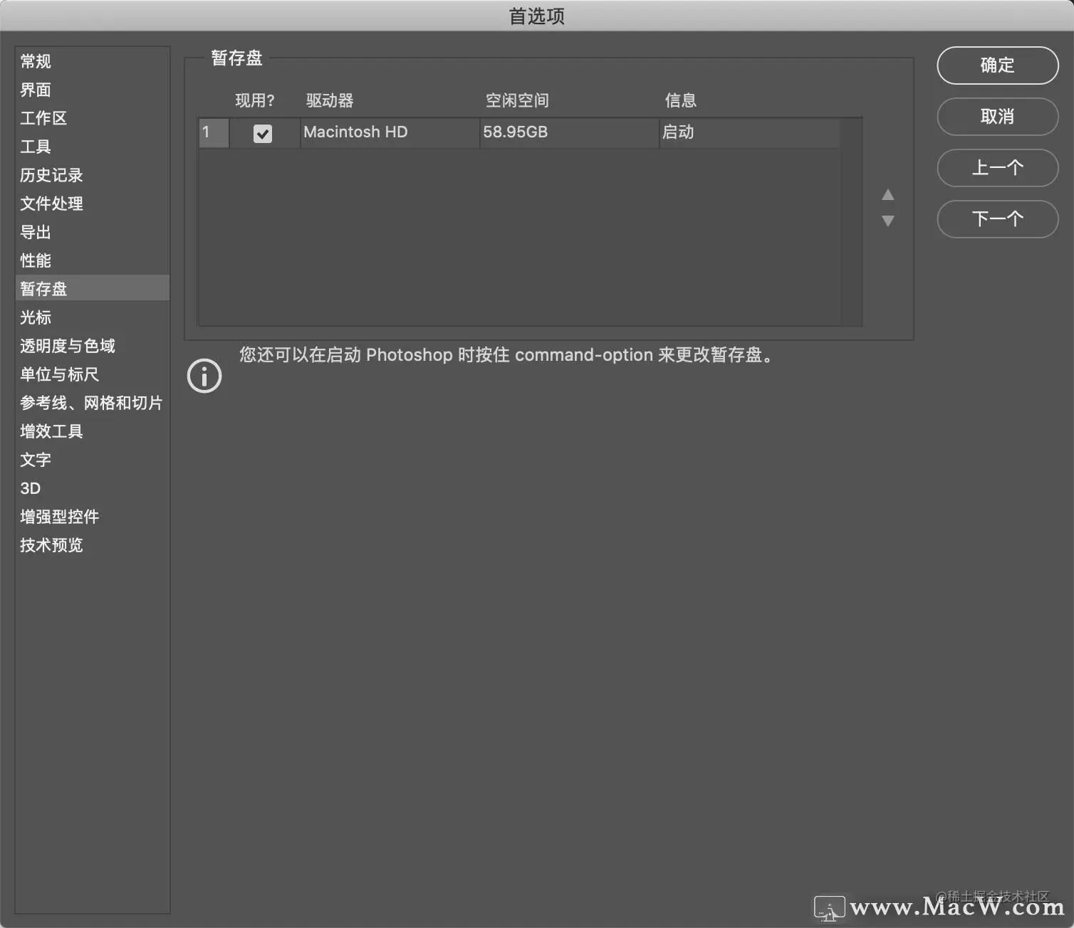 提示:通常暂存盘的设置会有以下几个原则,设置好后处理大图片会明显感觉到顺畅。
