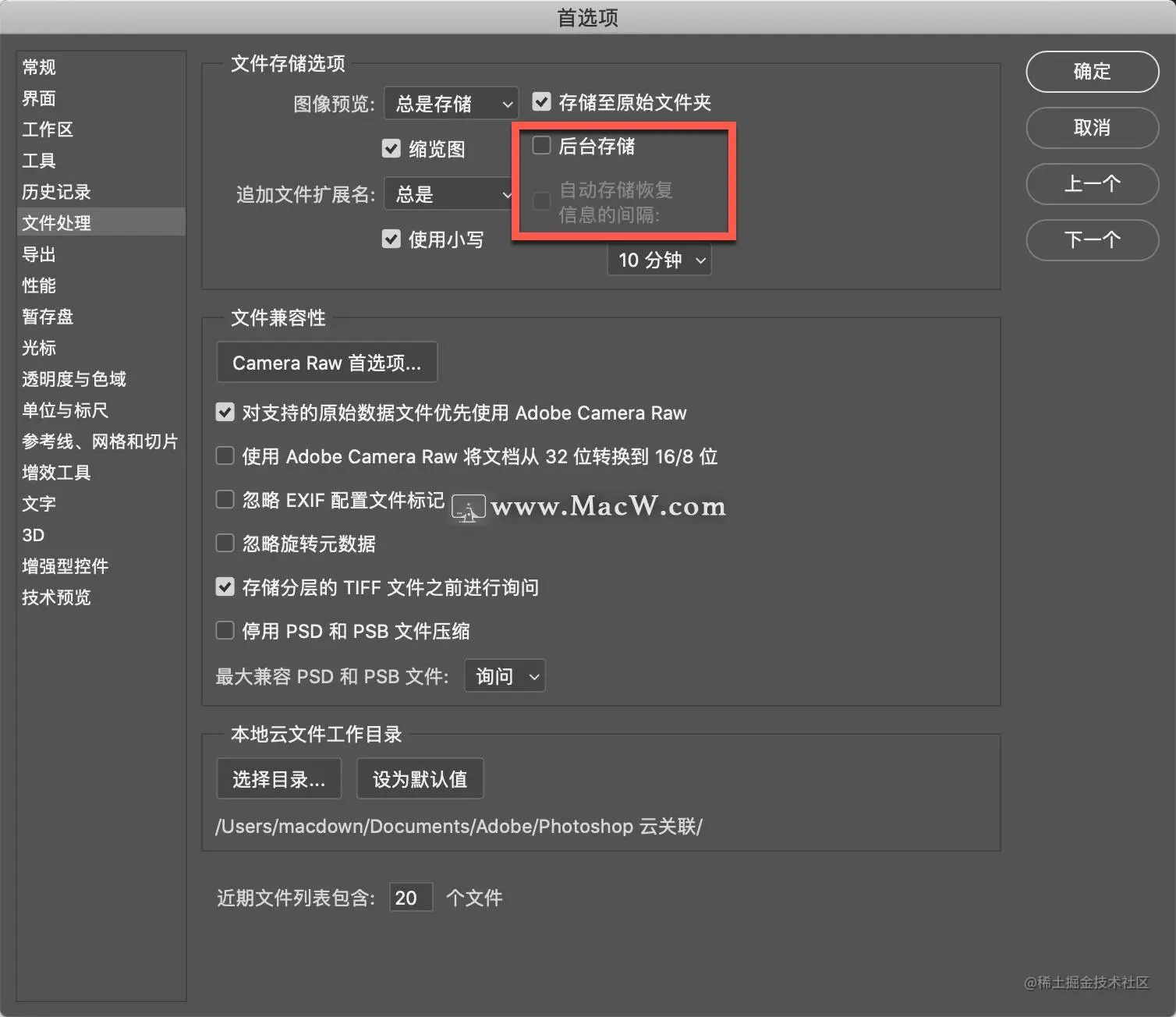 后台存储的含义是每隔一段时间,ps自动保存当前文件的修改,以免断电或异常当机给用户造成损失。然而很多情况下,ps卡死其实多半都是它的“功劳”,尤其当你处理的文件过于复杂时,后台存储带来的隐患往往比它的正向作用还高,建议关闭!