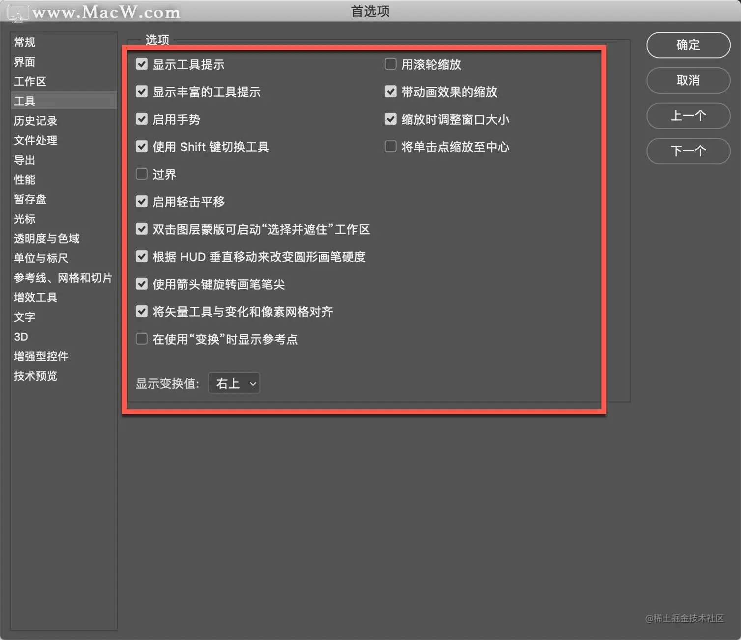 在工具标签下,有很多平时并不怎么常用的功能,这些功能虽然作用不大,但会明显拖慢ps的运行速度。就像Windows的界面特效一样,打开越少运行越快。通常我只会保留以上四项,满足绝大多数应用足够了。