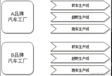 基于这2个品牌汽车工厂的系列生产线,如果今后产生新的C品牌汽车、D品牌汽车等,都可以沿用此种规划好的生产模式,这便是抽象工厂模式的基础数据模型。