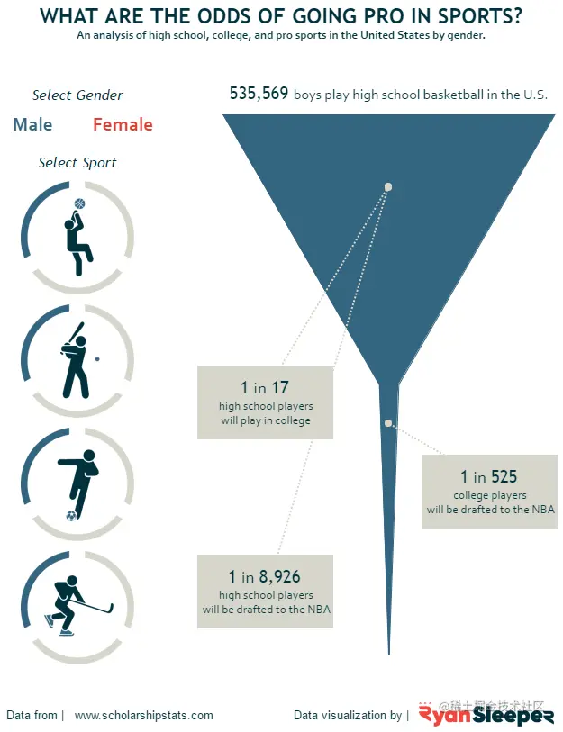 2.分析社会现象,如美国的“篮球漏斗”。最上方是在高中打篮球的男孩,最后是进入 NBA 打职业篮球的男孩。