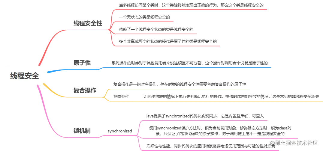 在线程安全性的定义中,最核心的概念是正确性。其含义是,某个类的行为与其规范完全一致,在良好的规范中通常会定义各种不变性条件来约束对象的状态,以及定义各种后验条件来描述对象操作的结果。因此,从正确性的角度定义线程安全性:当多线程访问某个类时,这个类始终都能表现出正确的行为,那么就称这个类是线程安全的。