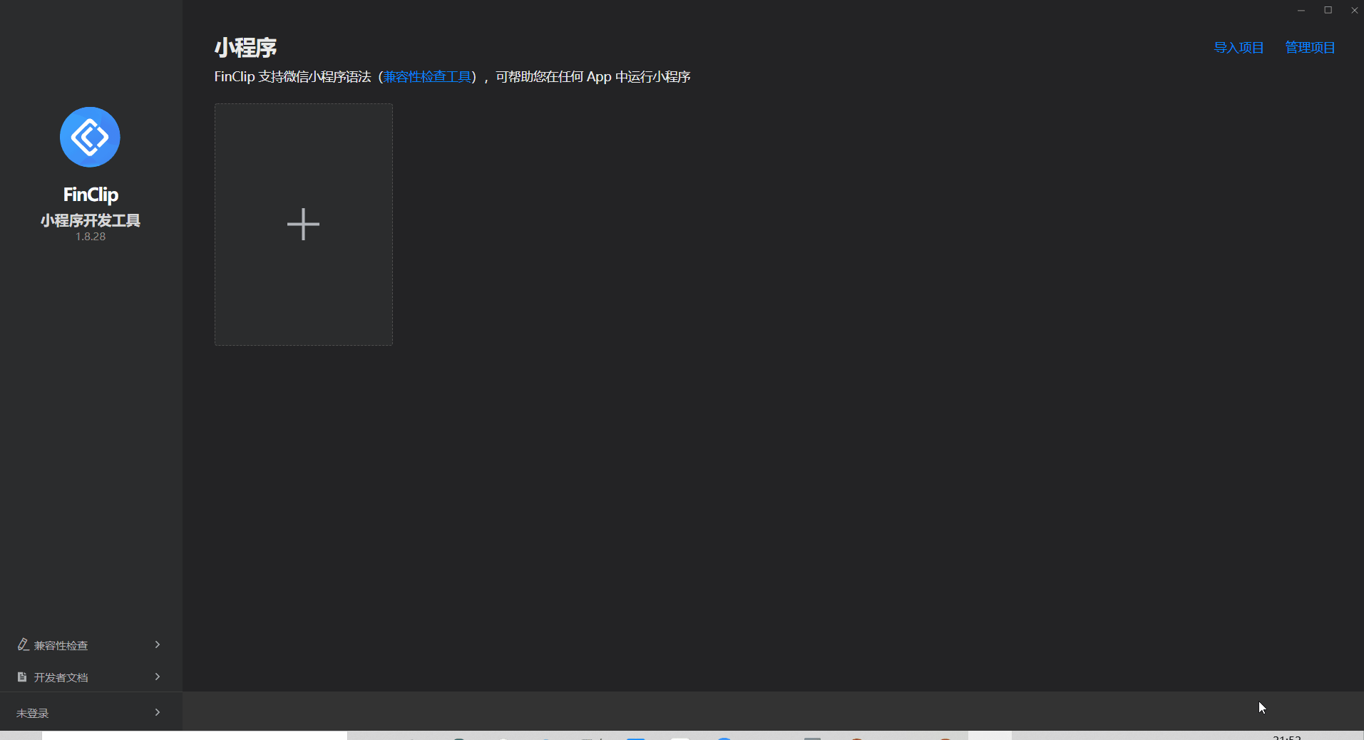 下载完 FIDE 后,使用“小程序开放平台”相同的账号进行登录,导入指定的小程序工程文件。导入文件后会先触发兼容性检查工具,扫描当前工程下调用的组件、接口是否能在 FinClip 平台里正常运行。