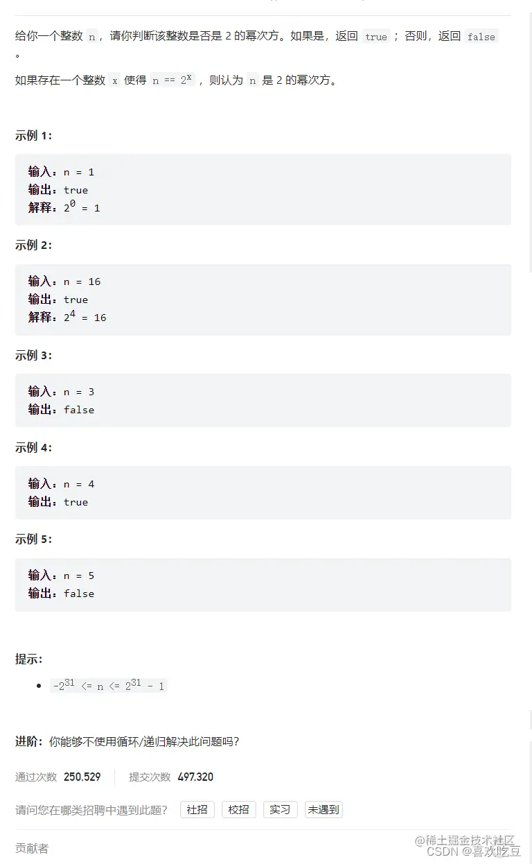 具体代码中,当检查第 ii 位时,我们可以让 n 与 2^i进行与运算,当且仅当 n 的第 i 位为 1 时,运算结果不为 0。