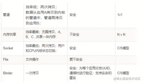 六丶Binder相对其他IPC方式优点/为什么使用Binder?