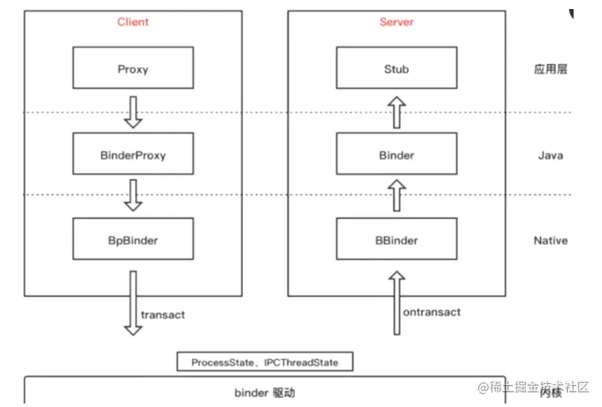 AIDL的java接口.Stub.proxy.transact()为数据发送处;