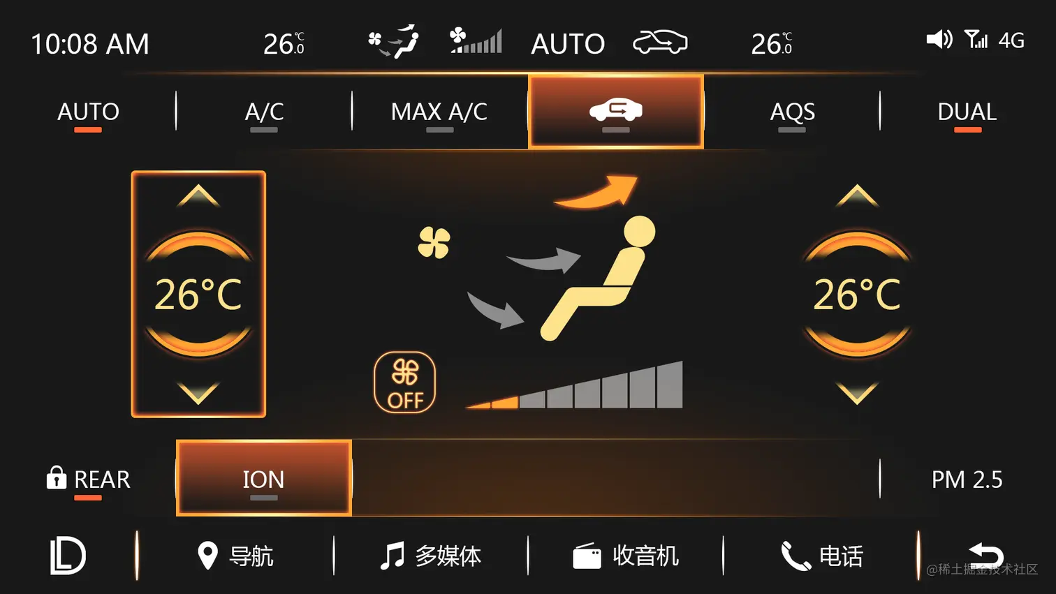 相较昨天,今天实现了风向和风量的显示,并且可以和我们中央控制旋钮联动起来。如下图所示