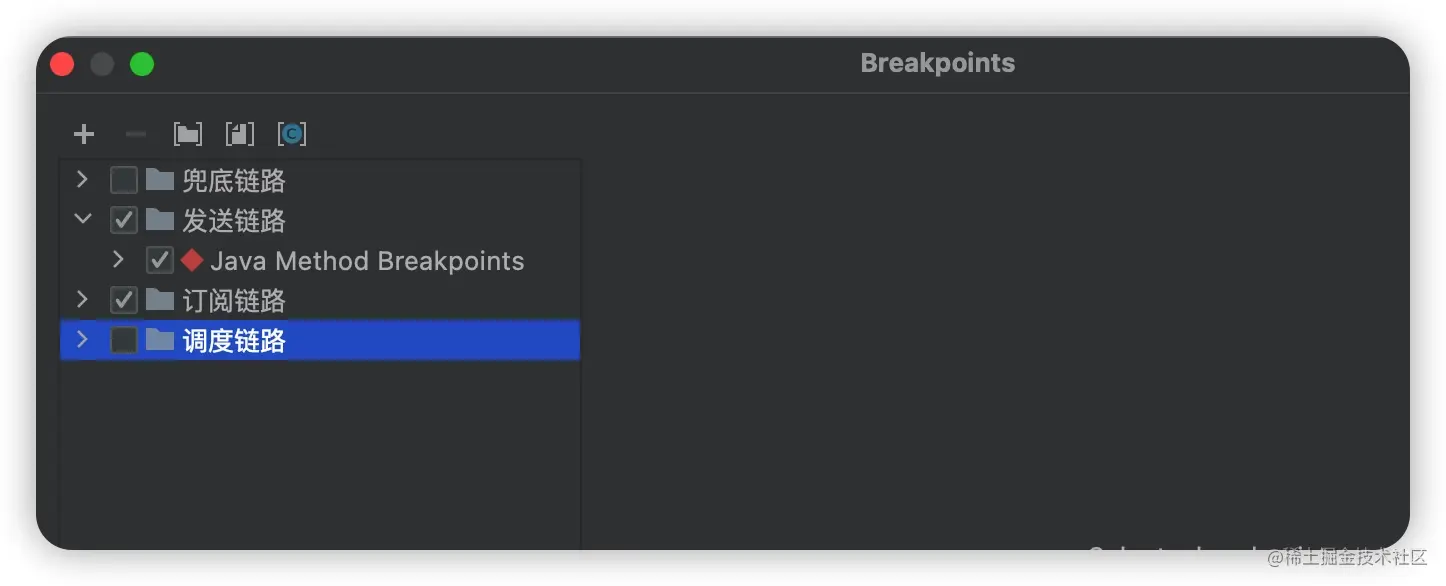 系统常用的链路主要就几条,而常调试问题的地方也只有几处,可以把这几处位置的断点管理起来,在遇到问题的时候直接把断点分组管理拿出来就可以了。