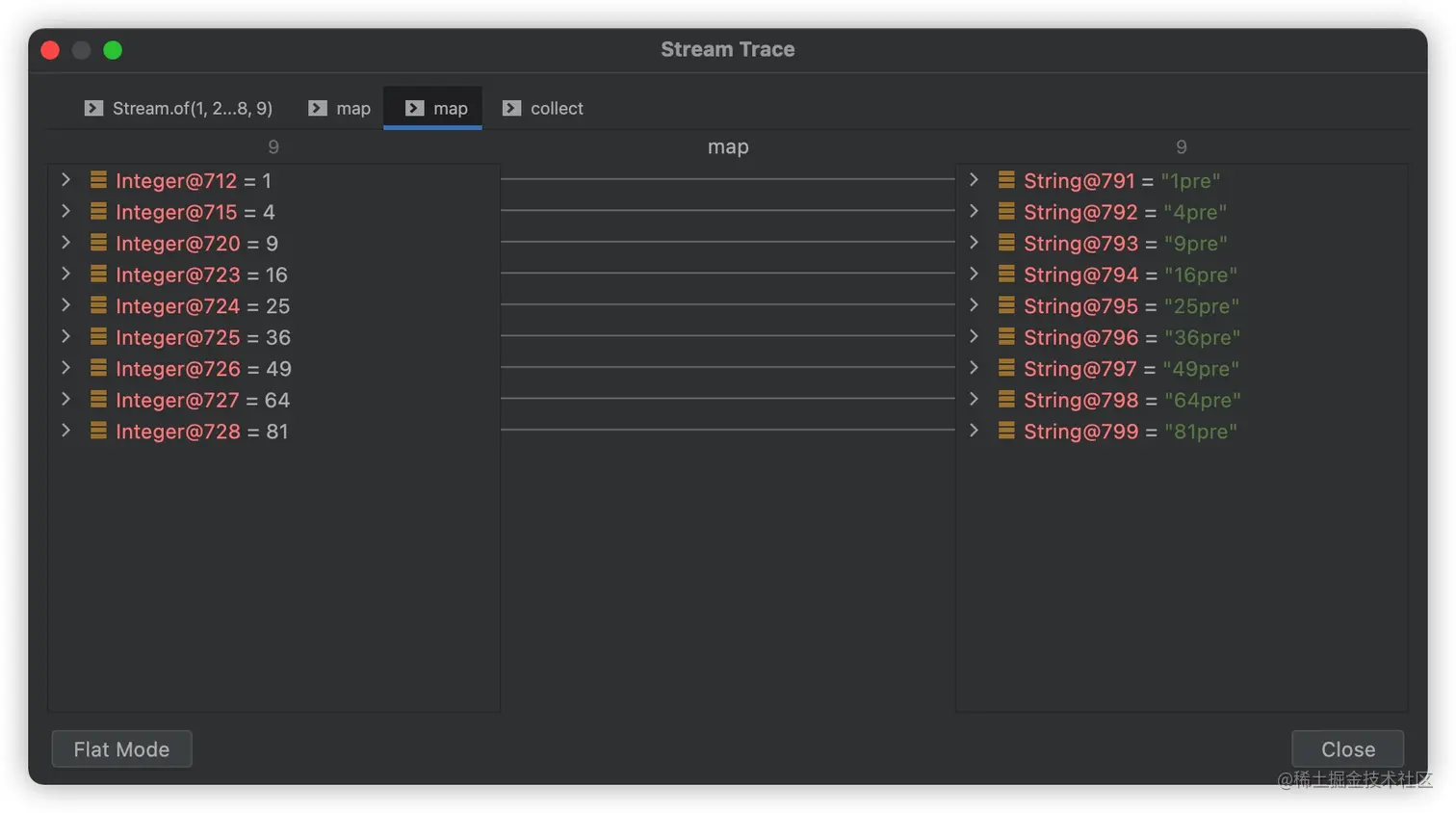 Java8之后的labmda表达式里面一般流程会多一点,也不是很好调试,Idea也有对应的工具,可以直接查看Strem流中的数据,在Debug Window下发,如果识别到labmda表达式后会展示出来。