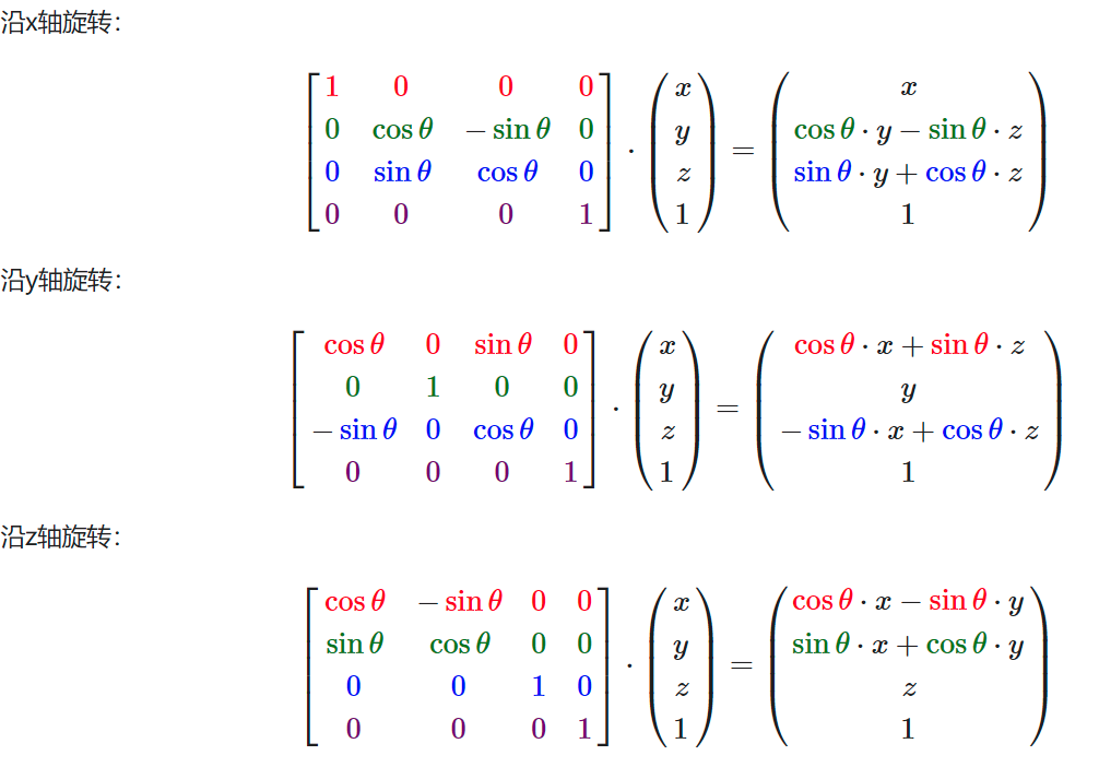 经过上述的讲解,我们要完成 4 个空间转换,需要用到了 3 个转换矩阵:
